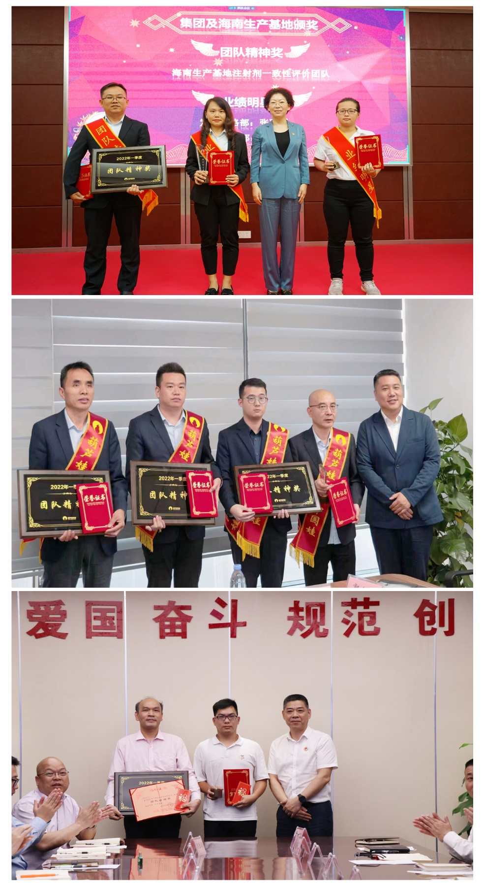 为了表彰在2022年一季度“深化变革,赢得开门红”工作中“超额完成计划、超出本职工作或超越组织预期”的先进集体和优秀个人,会议期间还举行了AG贵宾药业集团2022年一季度“开门红”表彰颁奖仪式。营销中心葫芦世家事业部湖南区域主管黄子杰等12人荣获业绩明星奖,葫芦世家事业部等5个集体荣获团队精神奖。